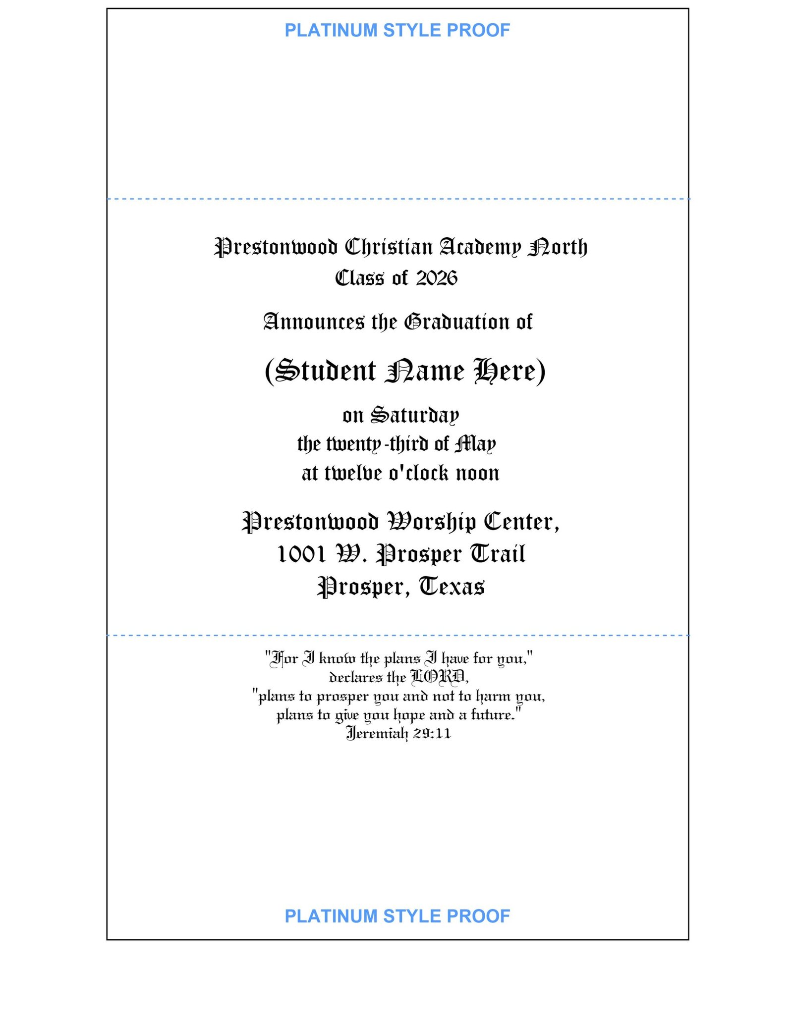 It's time to celebrate! Announce your graduation in style with your OFFICIAL graduation announcement specifically designed for your school. Each package of announcements comes with matching inner and outer envelopes. These announcements do not come with name cards. Those are an additional item that can be added to your cart.