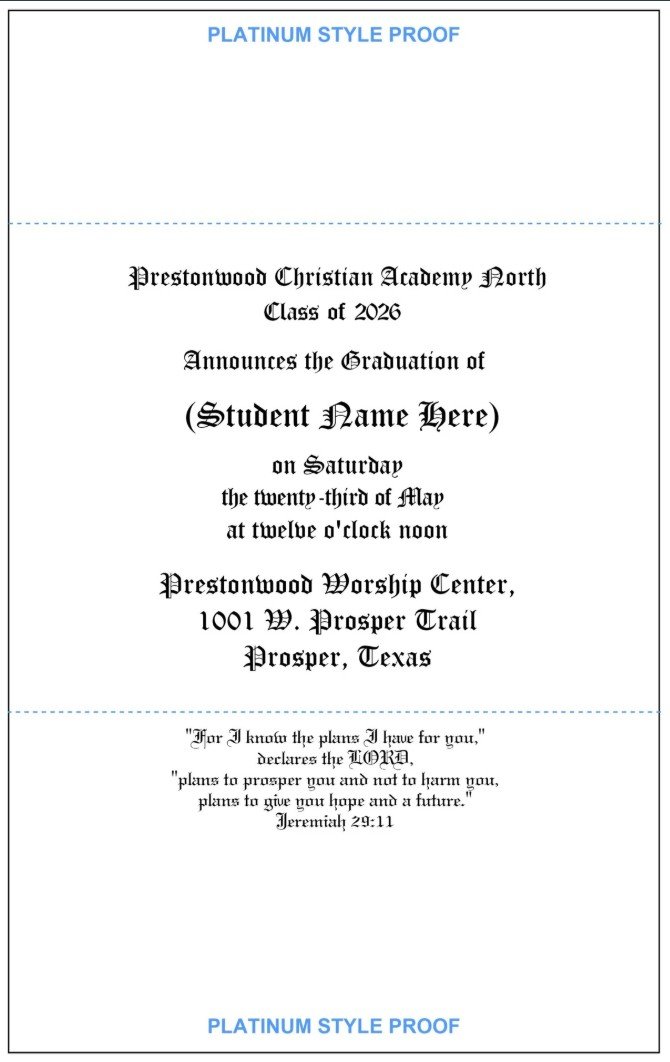 PCA Graduation Announcements North Campus